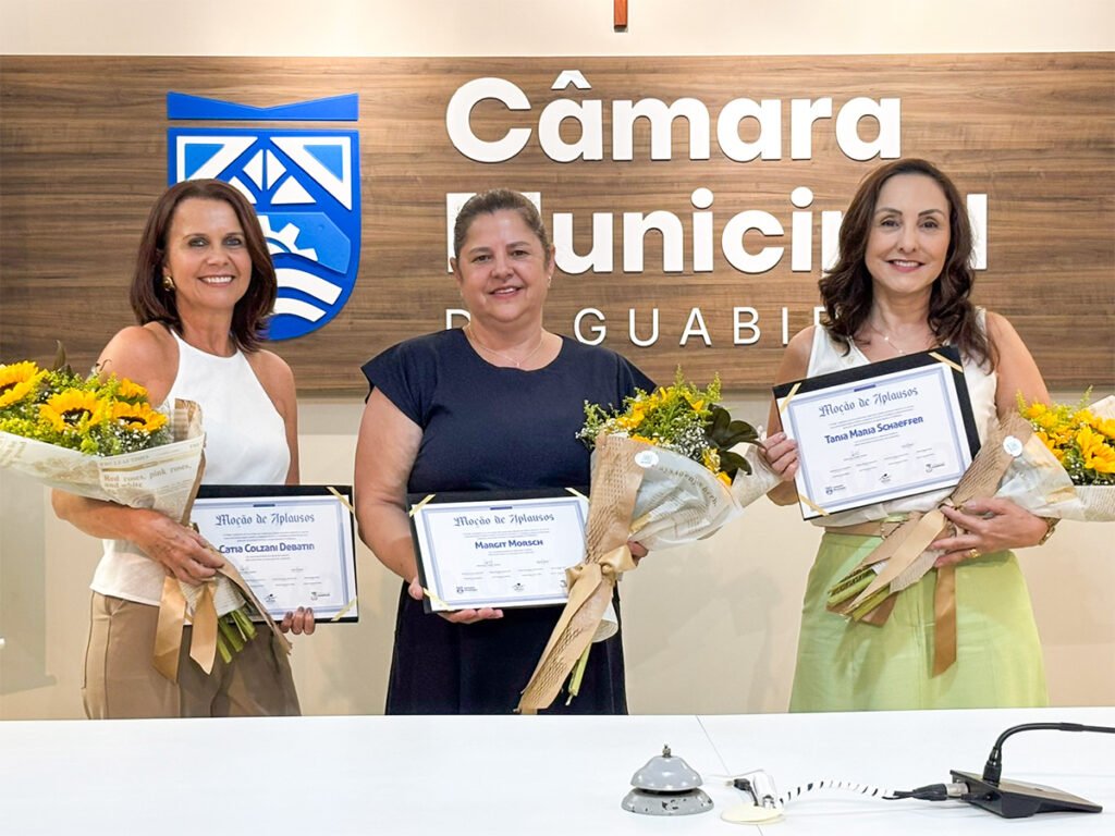 Professoras aposentadas em 2025 recebem homenagem e moção de aplausos pelos serviços prestados à educação guabirubense durante solenidade oficial | Foto: Diego Sestrem / Zeitung