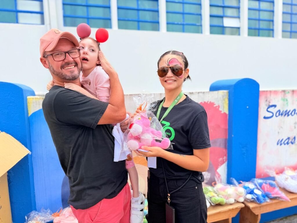 Um dos voluntários presentes foi o torneiro mecânico Fábio Dognini, de 47 anos, que distribuiu pelúcias arrecadadas por ele. Pai de uma aluna da instituição, ele participa frequentemente de ações solidárias na Apae. “Para mim, não é algo de valor comercial e, sim, a oportunidade de fazer alguém feliz, principalmente se for criança. No Natal, sou o Papai Noel oficial da Apae e sempre distribuo presentes. É como um dom que recebi depois de me tornar pai, algo difícil de explicar. Apenas sinto que devo fazer, como se fosse uma missão”, afirma.