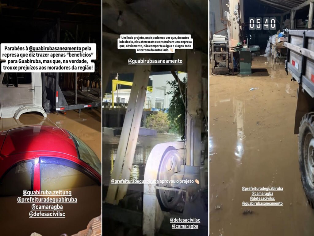A mesma leitora apontou que alterações no terreno podem ter contribuído para o transbordamento. “Um lindo projeto, onde podemos ver que do outro lado do rio eles aterraram e construíram uma represa que, obviamente, não comporta a água e alagou todo o terreno no outro lado”, publicou, finalizando com uma crítica à gestão pública: “A prefeitura de Guabiruba aprovou o projeto”.