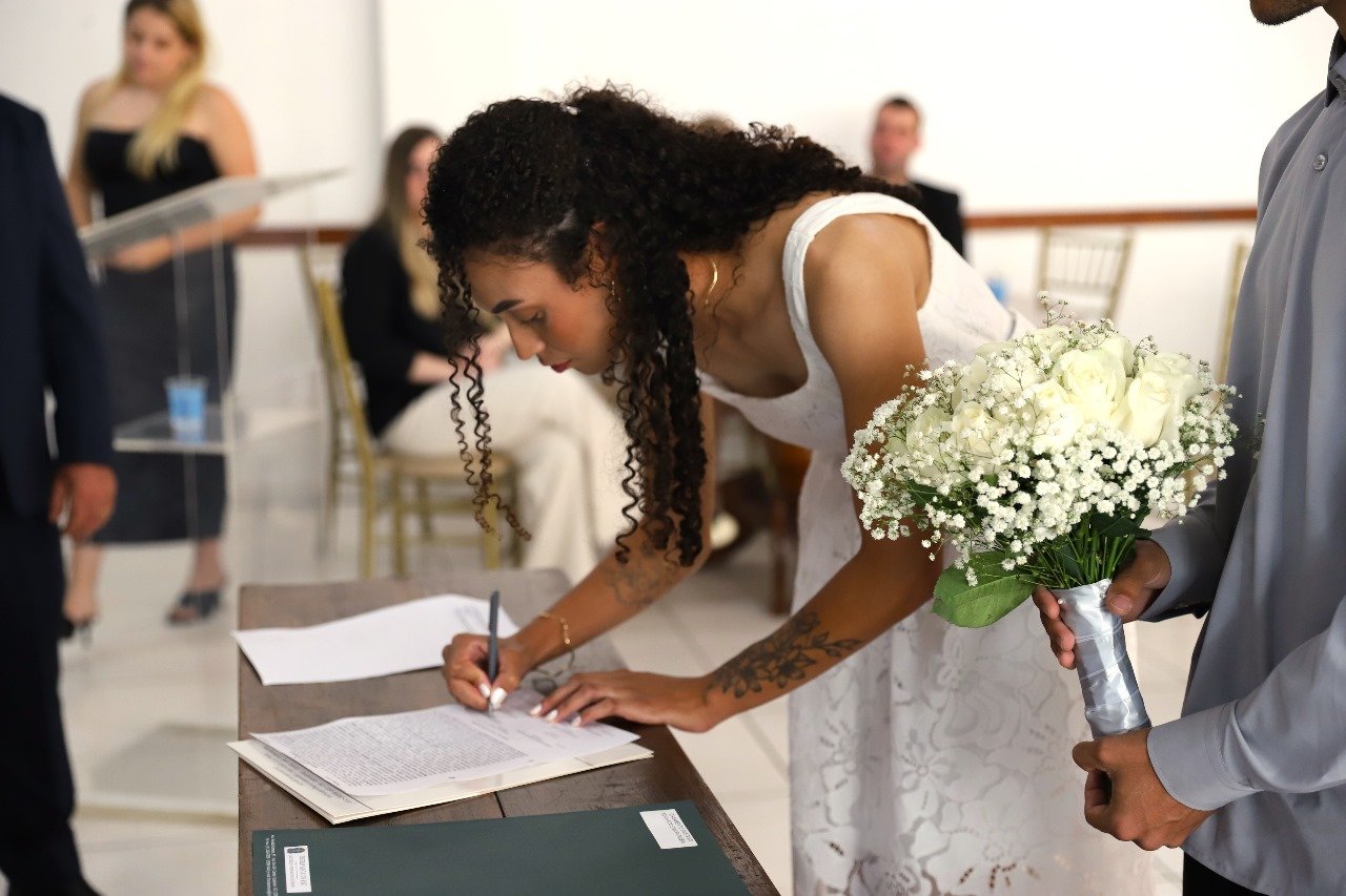 A cerimônia civil ocorreu na presença de familiares, amigos e autoridades locais. O ato foi conduzido pelo Juiz de Paz do Cartório de Guabiruba, Sr. Marcelino Kohler. A assinatura do documento de casamento pelos casais contou com a presença do Prefeito Valmir Zirke e sua esposa, e do Vice-Prefeito Cledson Kormann e sua esposa, que atuaram como testemunhas.