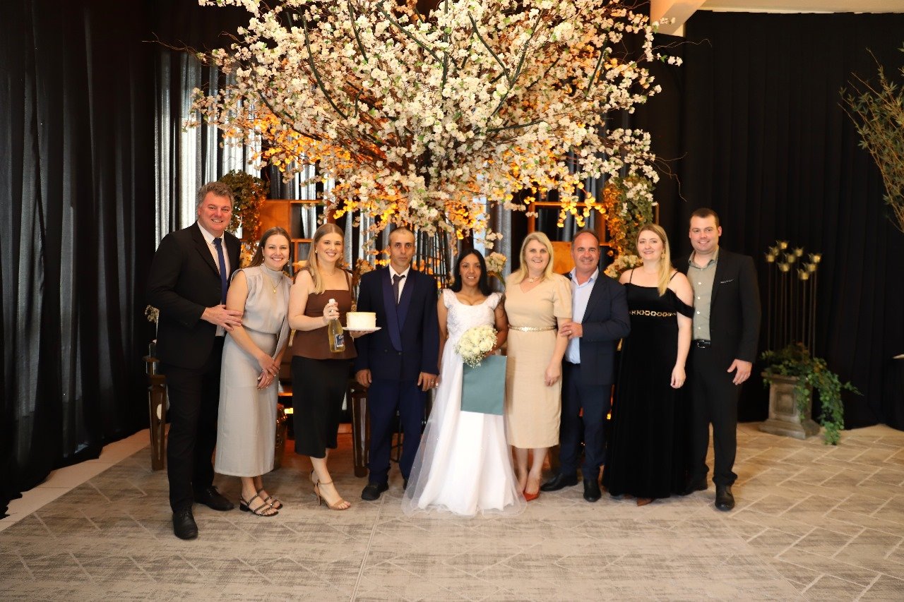 A Secretária de Assistência Social, Habitação e Emprego, destacou a importância e o simbolismo da ocasião. “É uma grande alegria pra nós, enquanto administração municipal, por meio da Secretaria de Assistência Social, podermos proporcionar esse momento tão único e especial para a população de Guabiruba. Como disse o prefeito em sua fala, a constituição de uma família é um grande ato de cidadania e direito de todos. Desde o início do ano nos empenhamos para conseguir realizar este evento da melhor forma, garantindo a gratuidade total, desde a solicitação de documentações necessárias, até a celebração. Ontem, pudemos oferecer a esses 8 casais, seus familiares e amigos, uma celebração completa do casamento, com direito a arrumação das noivas nos salões de beleza, um espaço lindamente decorado, músicas emocionantes, buquê de flores, entrada dos noivos com seus pajens e daminhas, e após a realização do ato civil pelo Juiz de Paz, um brinde com espumante aos recém-casados e um delicioso coquetel a todos. Esperamos que os registros desse dia sejam uma linda lembrança do amor na vida de cada um”, exclamou.