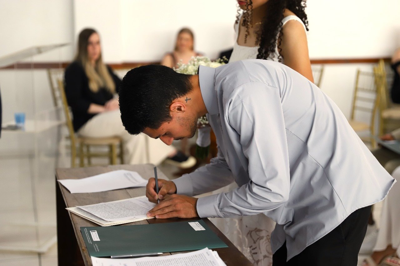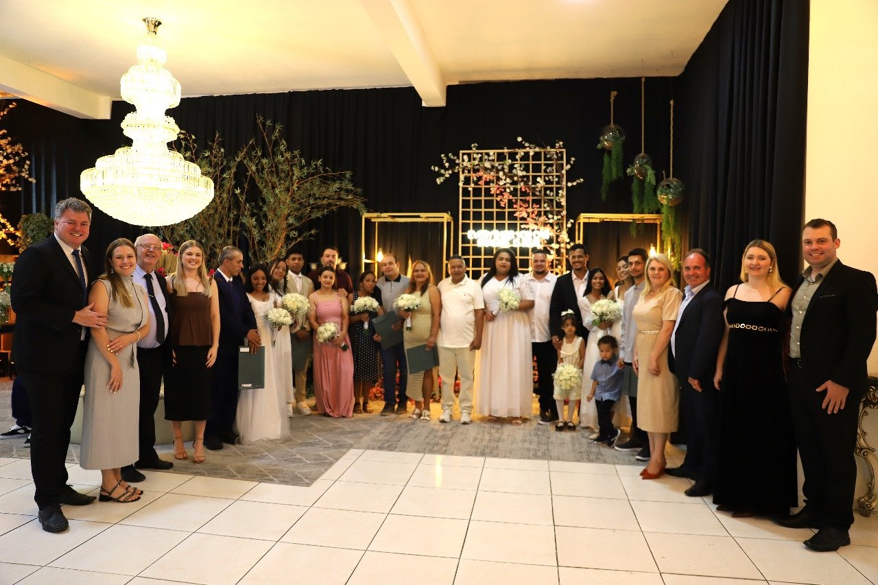 Oito casais de Guabiruba formalizaram sua união civil na tarde de domingo (9), durante a 4ª edição do Casamento Coletivo do município. O evento foi uma iniciativa da Secretaria de Assistência Social, Habitação e Emprego, realizada em parceria com a Escrivania da Paz de Guabiruba.