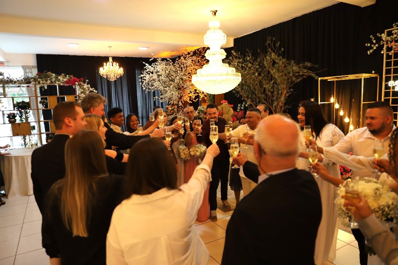 A celebração foi complementada com um coquetel oferecido pela Secretaria, no qual cada casal recebeu um bolo e uma espumante. A cerimônia também incluiu música ao vivo, com a participação do professor Rodrigo, disponibilizado pela Fundação Cultural de Guabiruba.