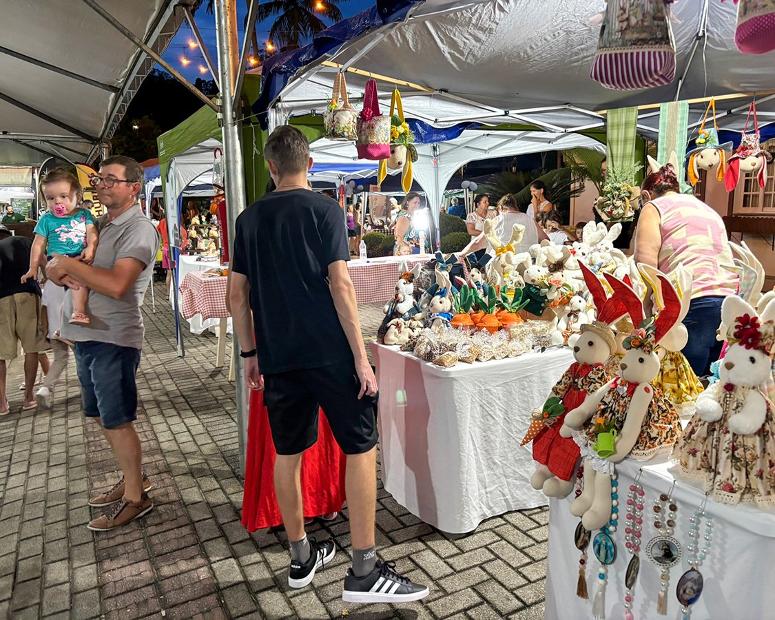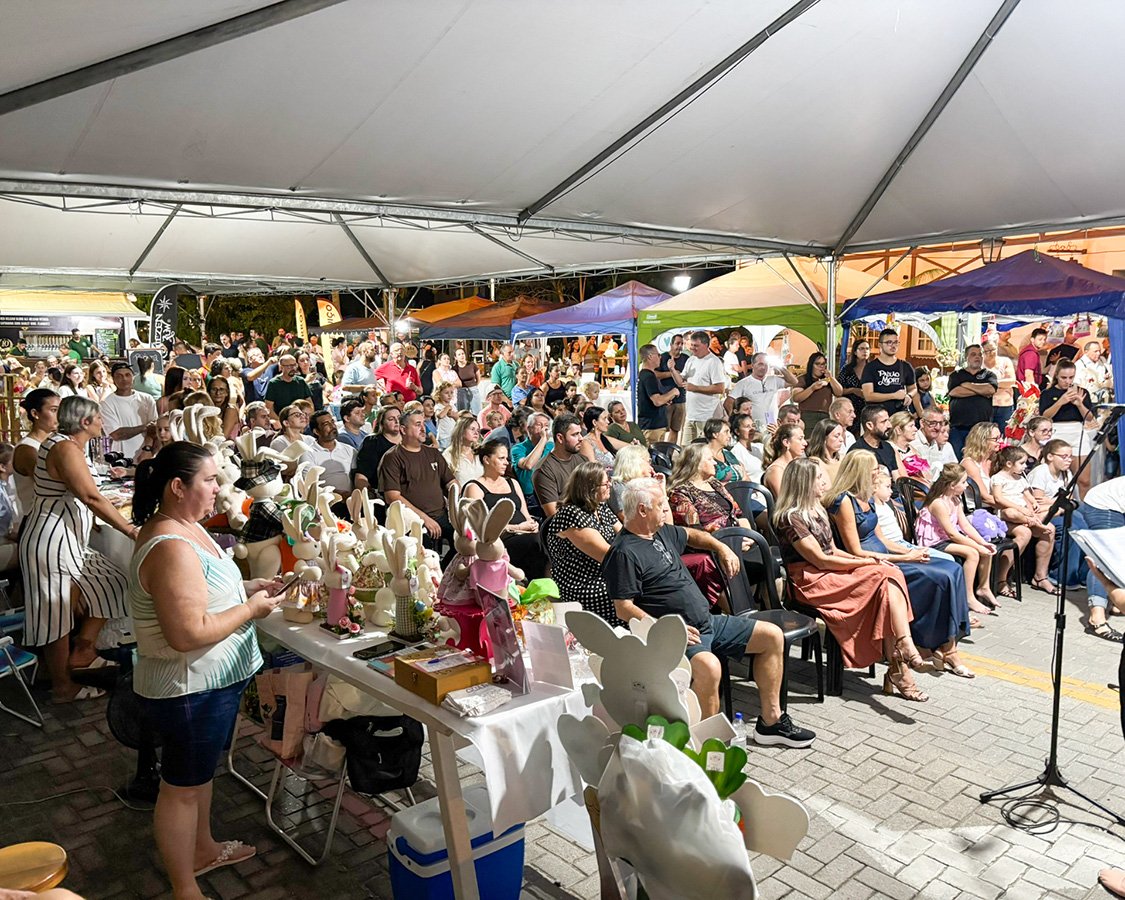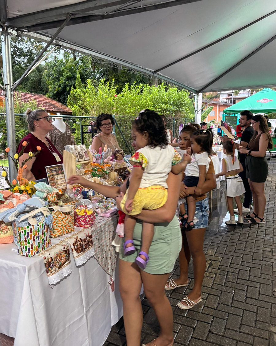 Centenas de pessoas passaram pelo espaço anexo à Câmara de Vereadores de Guabiruba no domingo (22) para acompanhar a Feira Delícias de Páscoa. O evento reuniu moradores e visitantes em um dia dedicado à tradição e ao lazer em família, com diversas opções de entretenimento e gastronomia.