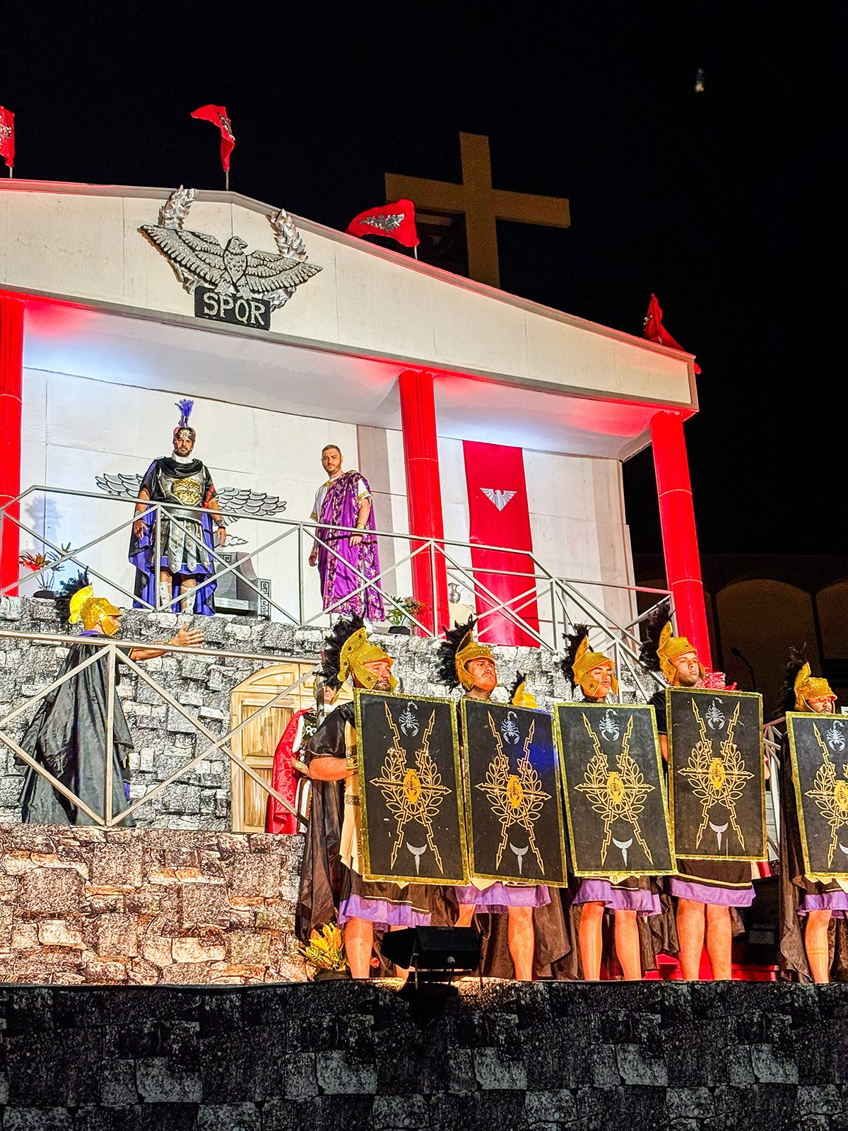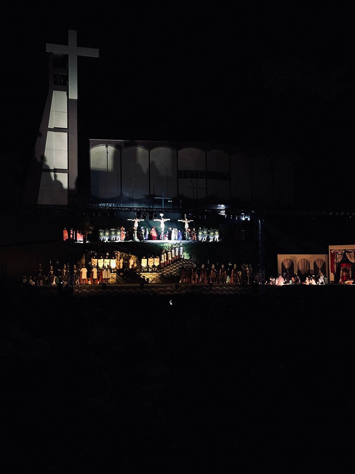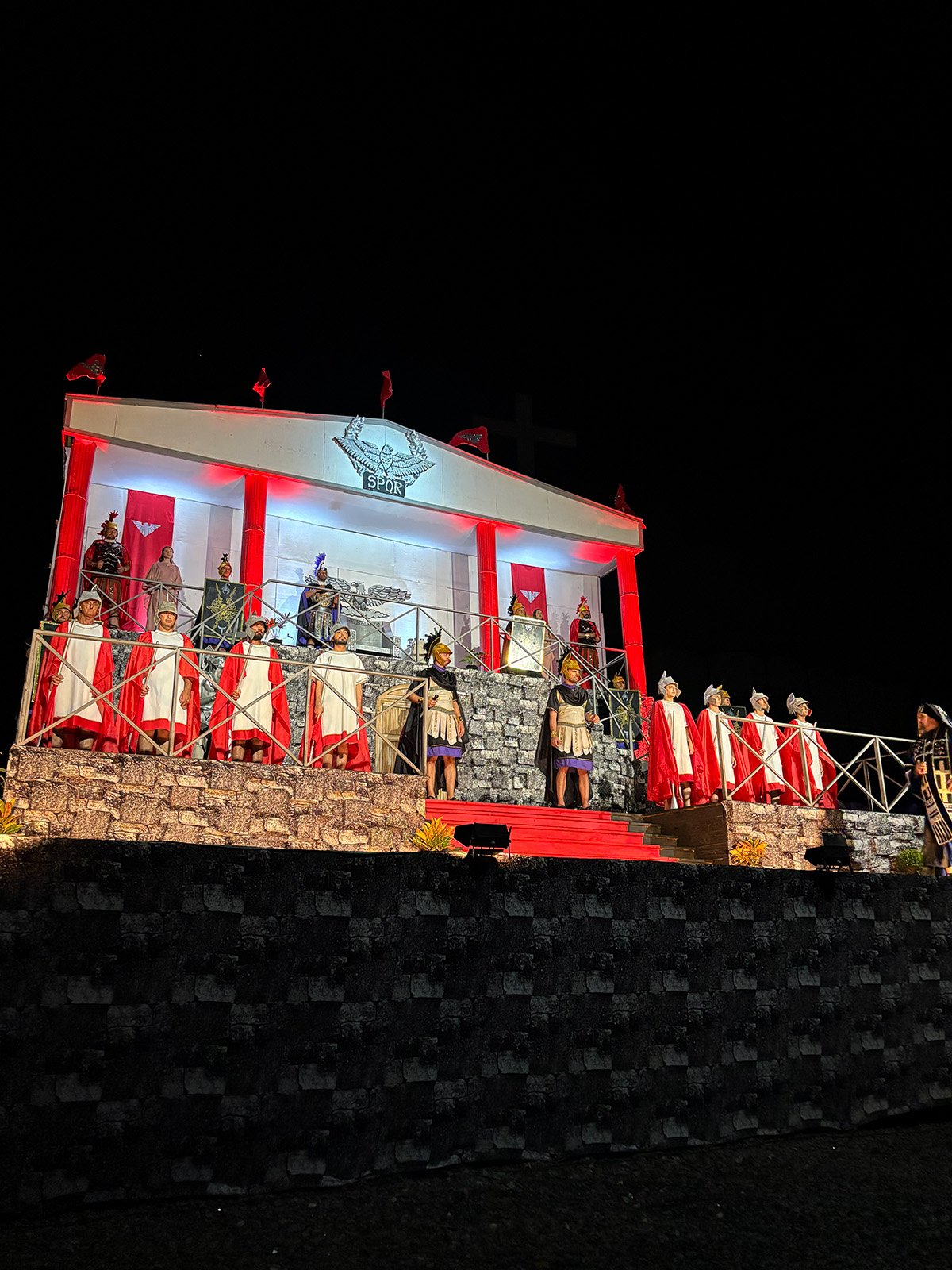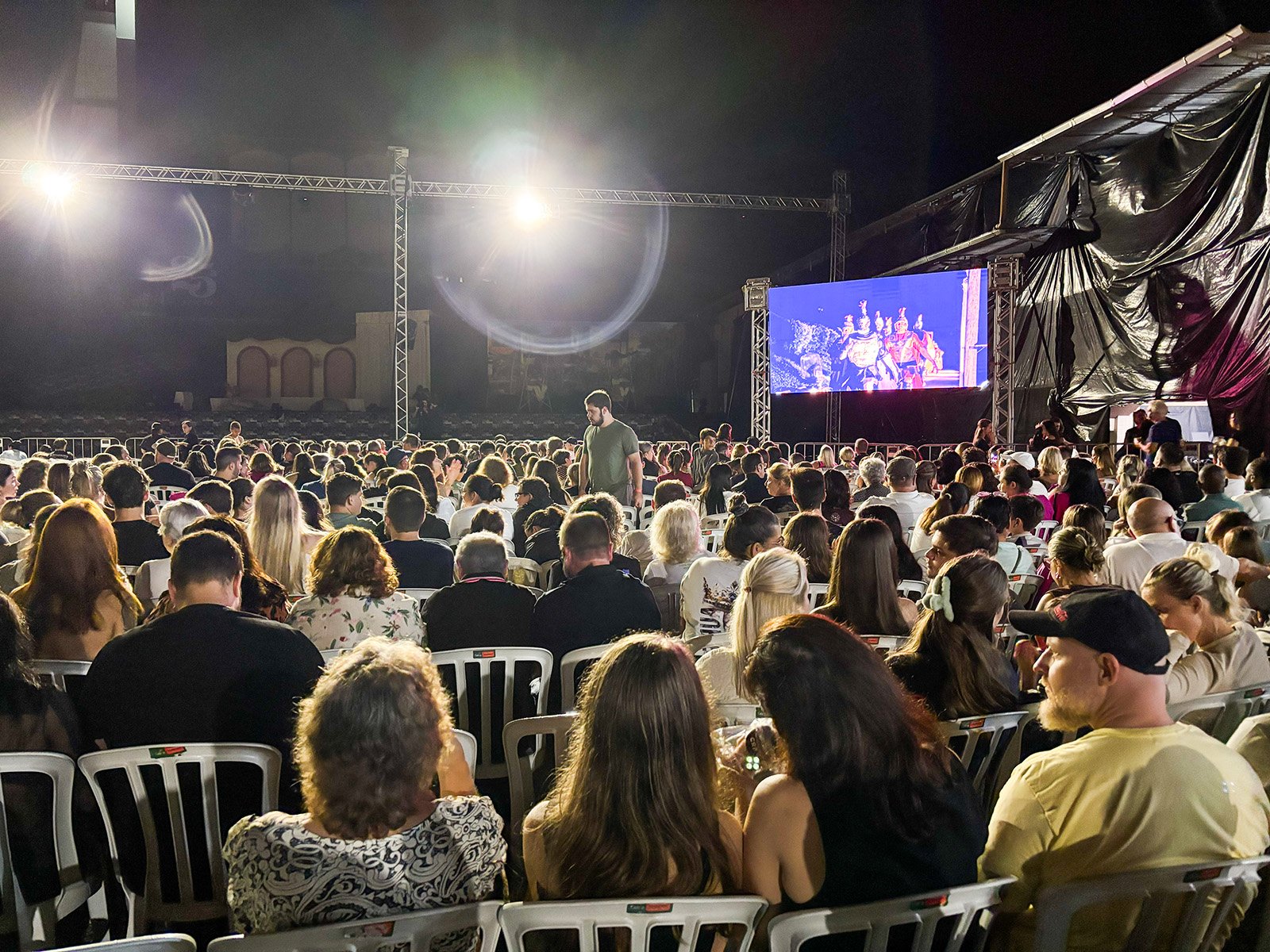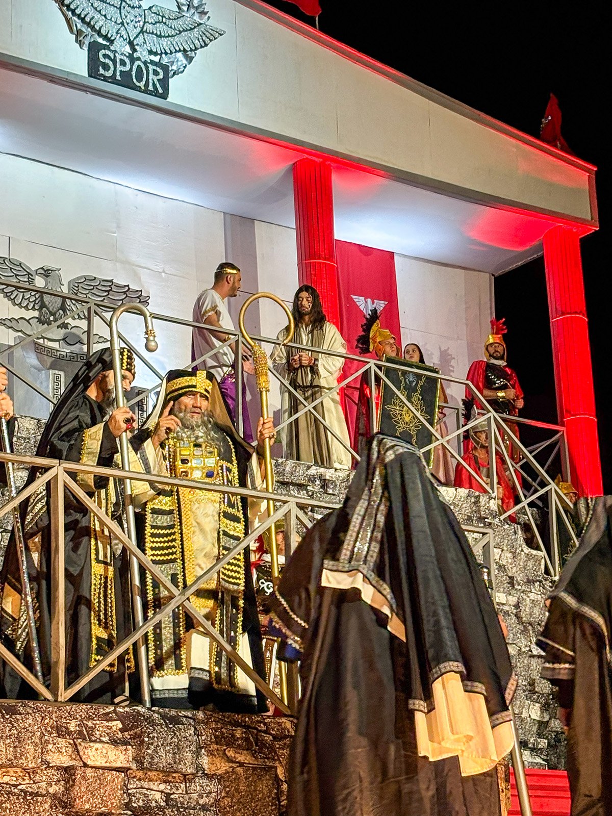 O evento mobiliza mais de 500 voluntários que atuam em diversas frentes, incluindo produção, direção, organização, figurino, cenografia e elenco. Aproximadamente uma hora antes do início da apresentação, houve registro de chuva forte na região, o que levou a organização a realizar a secagem das cadeiras para a acomodação dos presentes. Durante o espetáculo, no entanto, não houve precipitação. A equipe organizadora havia planejado a distribuição de capas de chuva caso o tempo permanecesse instável durante a peça.