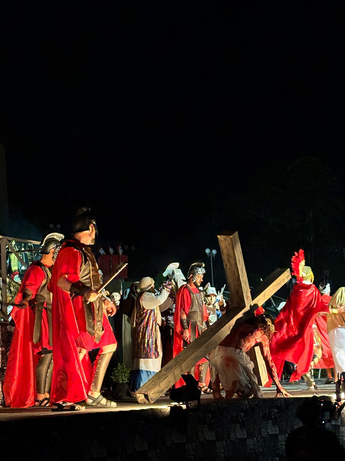 Após o encerramento da encenação, integrantes do elenco falaram sobre a experiência de compor a obra. Thiago Guenther, um dos cinco atores que se revezam no papel de Jesus adulto, destacou o período de dedicação ao projeto. “É muito gratificante fazer parte desse espetáculo, ainda mais com o papel de Jesus. Estou muito feliz, é muito satisfatório ver esse público prestigiando o espetáculo. É um trabalho que já dura quase um ano, e a gente vem se preparando para esse momento. Tudo tem sido tão lindo e maravilhoso. Ver amigos e familiares aqui nos prestigiando deixa tudo mais lindo”, afirmou.