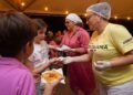 O primeiro pedaço foi entregue por Angelina Kohler. Segundo ela, o evento nasceu com uma macarronada e para esta edição do desfile a organização pensou primeiro em fazer polenta. “Mas a pizza gigante foi a melhor ideia”, frisa.