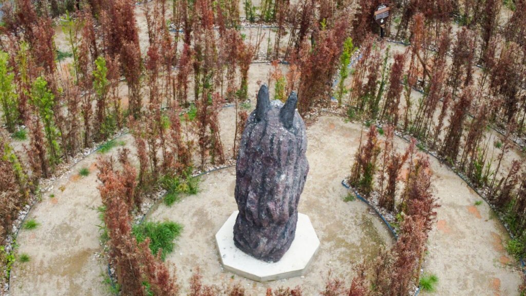 Escultura do Pelznickel recuperada: após sofrer danos em atos de vandalismo, a obra localizada no interior do labirinto foi restaurada pelo escultor original | Foto: Diego Sestrem / Zeitung