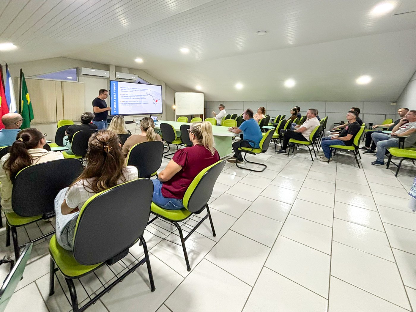 Uma reunião realizada na noite de terça-feira (10), no Salão Nobre da Prefeitura de Guabiruba, marcou a apresentação da nova Plataforma de Inteligência Turística do município. O encontro reuniu empresários do setor, o prefeito Valmir Zirke, o vice-prefeito Cledson Kormann, a Secretária de Turismo Clausia Regina Boos, além de representantes do CIMVI e da empresa FazerOQ, responsável pela implementação tecnológica.