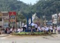 Antes de ser posicionada em seu lugar, a Maibaum foi trazida pelos voluntários com um desfile pelas ruas da cidade. O grupo saiu do início da rua Pomerânia, em direção a rua Imigrantes, pouco depois das 7 horas da manhã desta quarta-feira.